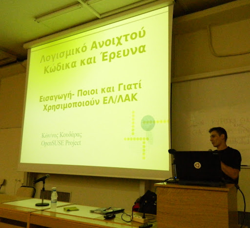 Two weeks ago - 27/11/2012 - , along with two great FOSS contributors shared a session in the Aristotle University of Thessaloniki in Greece regarding "Open Source and Research".